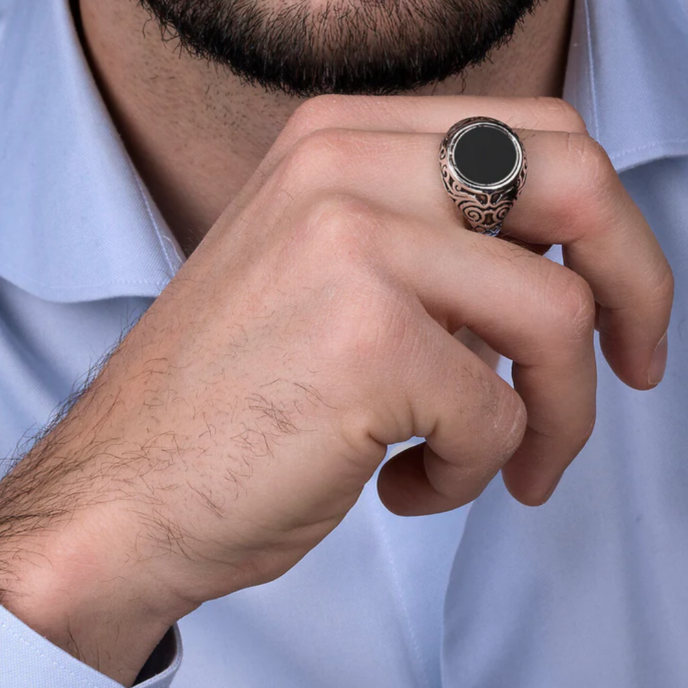 ALBERTO M. ANEL EM PRATA 925% PADRÃO C/ PEDRA CENTRAL MESA