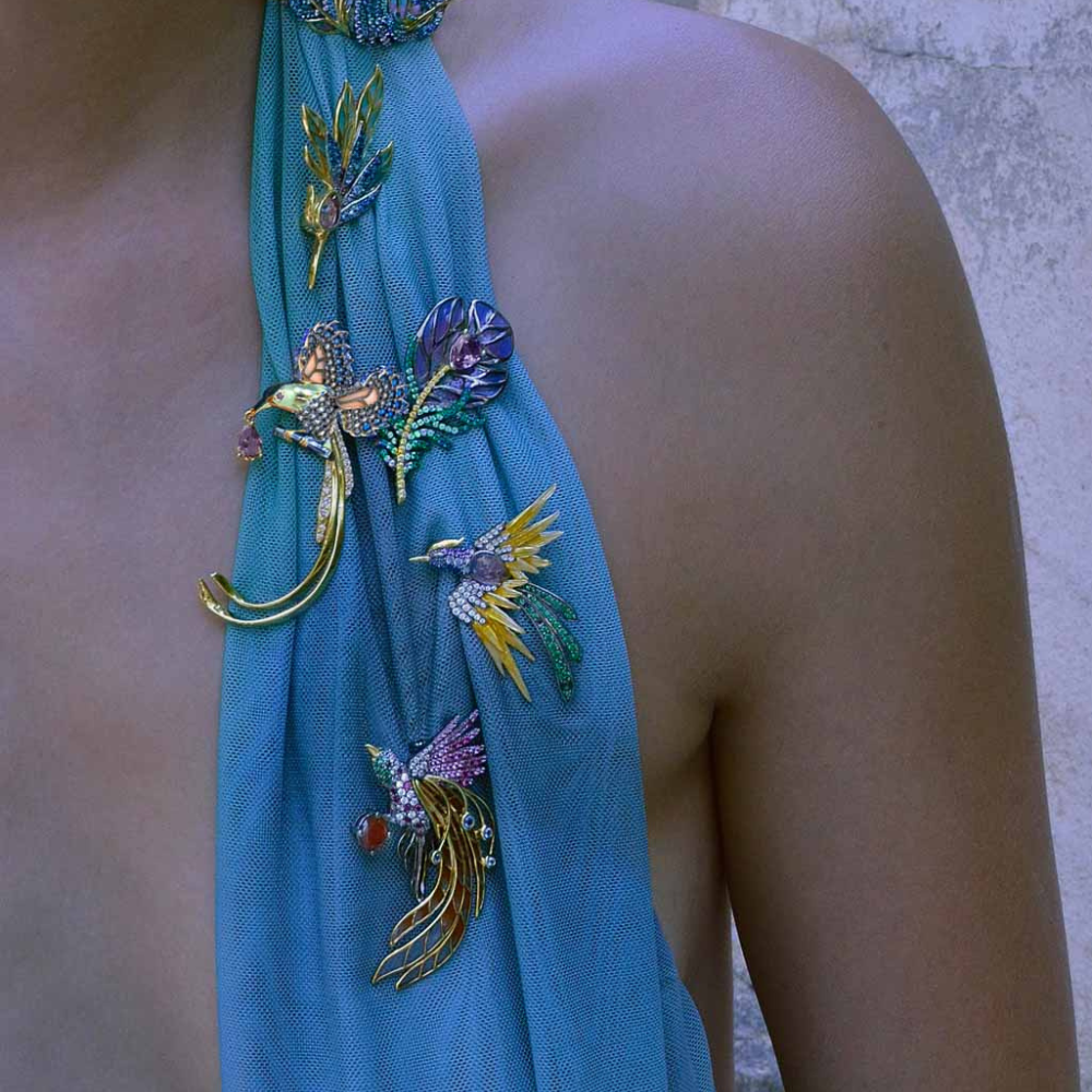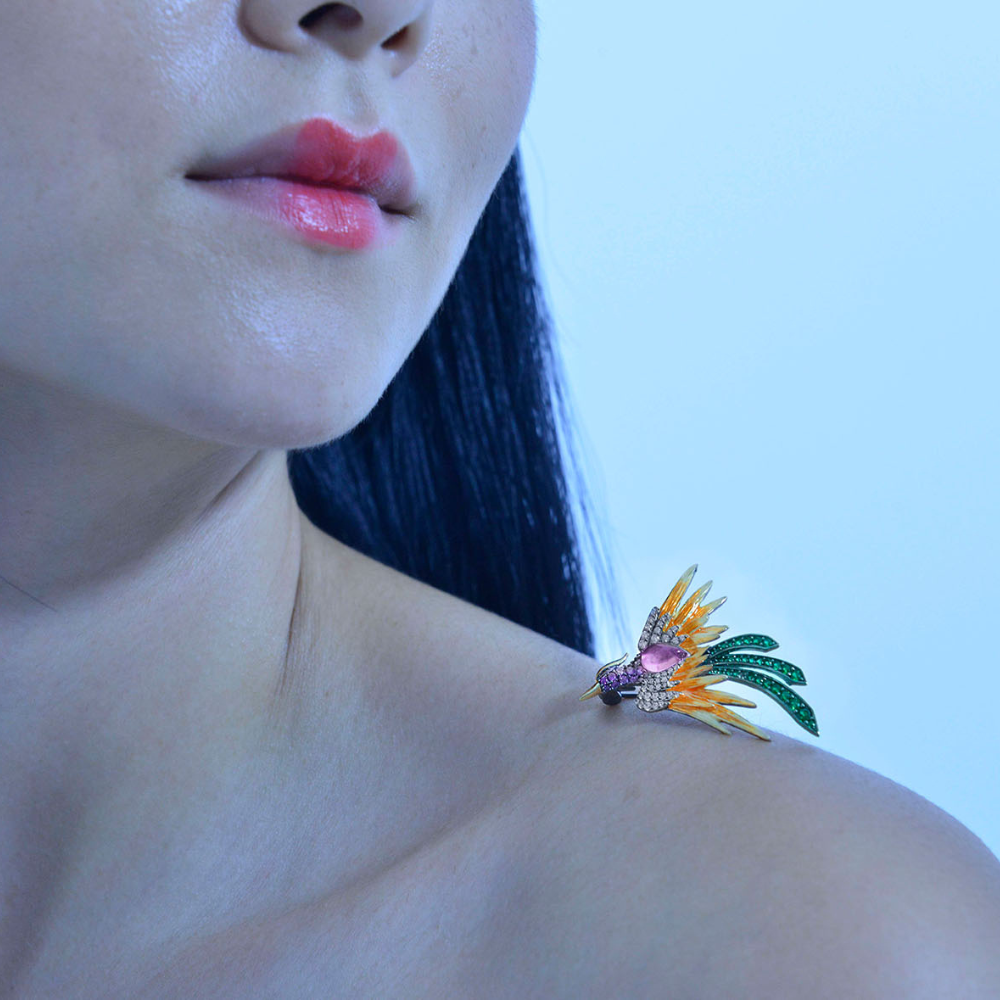 ALFINETE SALVATORE PRATA 925% DOURADA ( AVE FENIX AMATISTA )