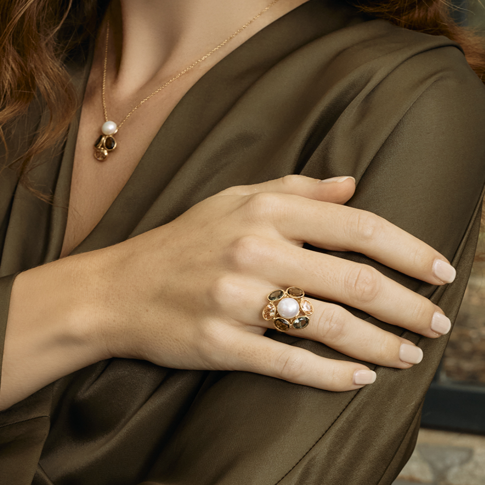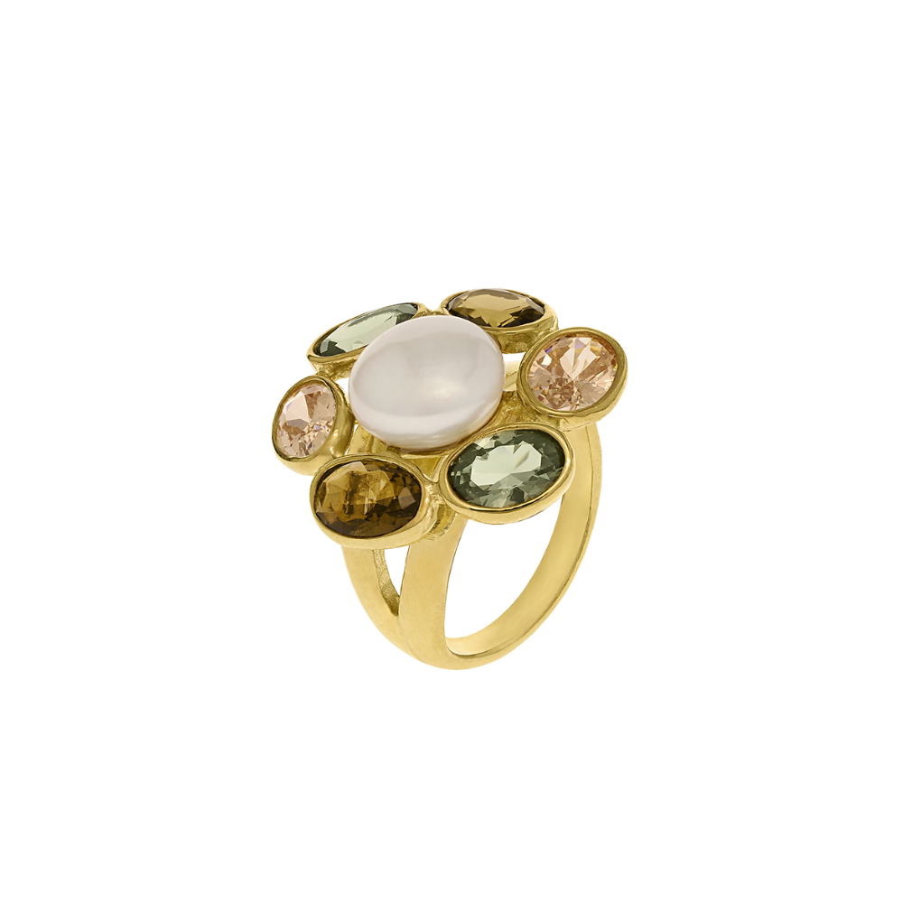 ANEL EUGÉNIO CAMPOS EVERGREEN EM PRATA 925% DOURADA- AJUSTAVEL