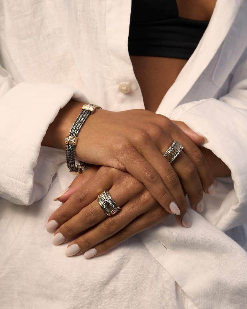 ANEL GÜMÜS EM PRATA 925% 13,0GR E OURO 375% 1,0GR C/ ZIRCONIAS