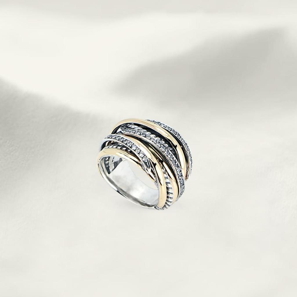 ANEL GUMUS EM PRATA 925% 14.5G E OURO 375% 1.40GRCOM ZIRCÓNIAS