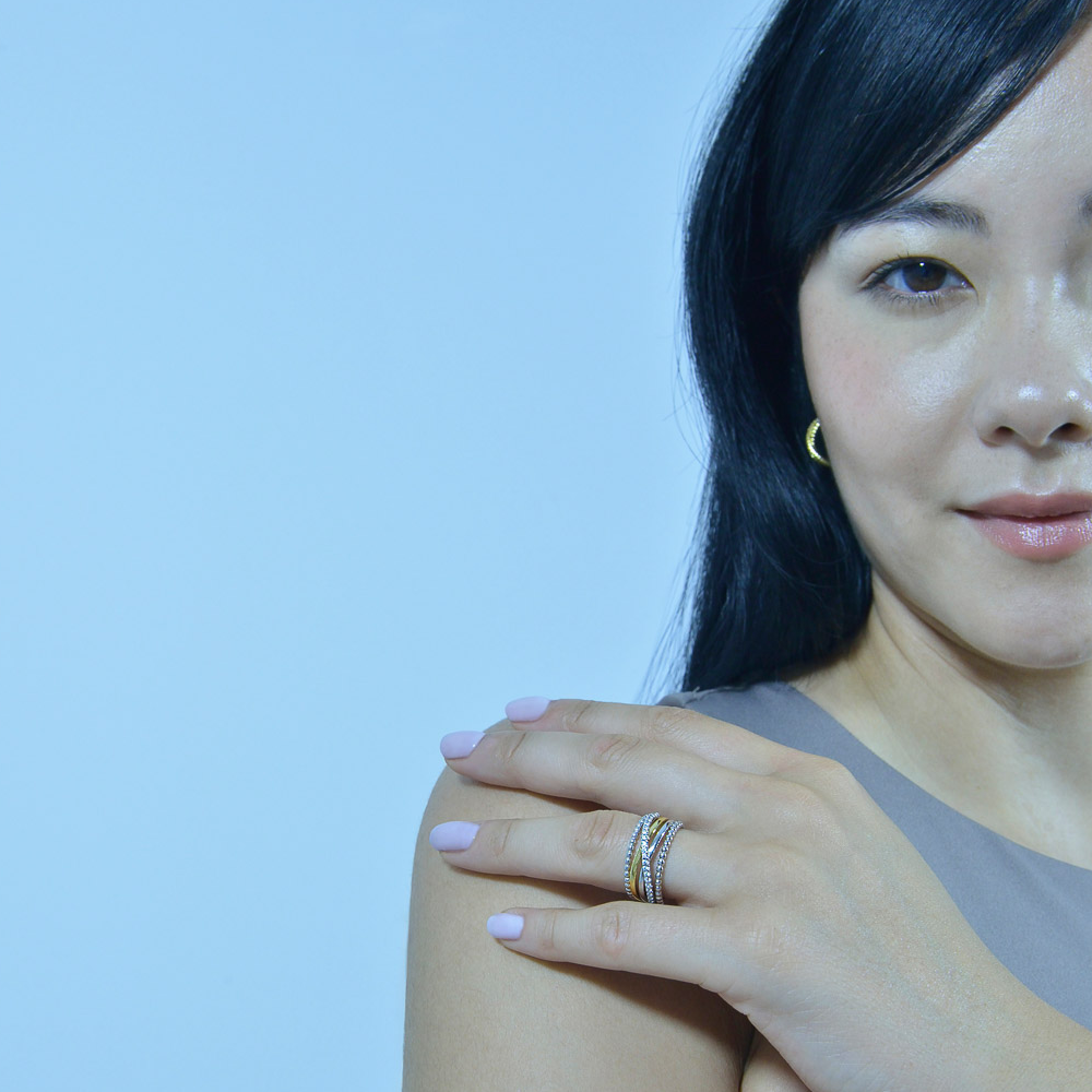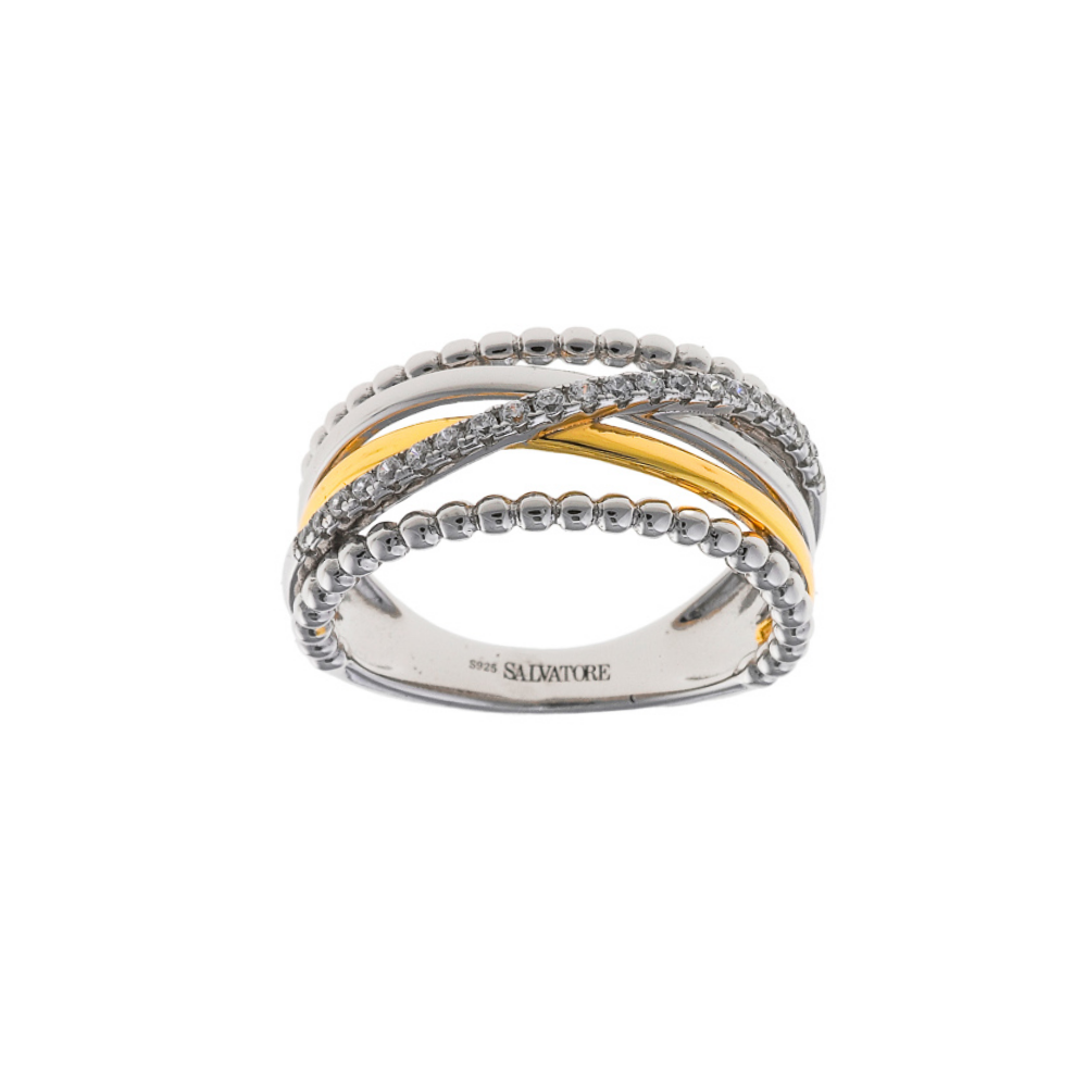 ANEL SALVATORE EM PRATA 925% BICOLOR COM ZIRCÓNIAS T14
