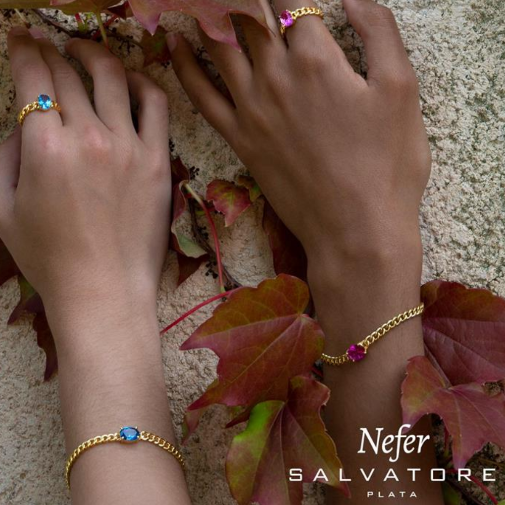 ANEL SALVATORE EM PRATA 925% DOURADA COM PEDRA AZUL T12