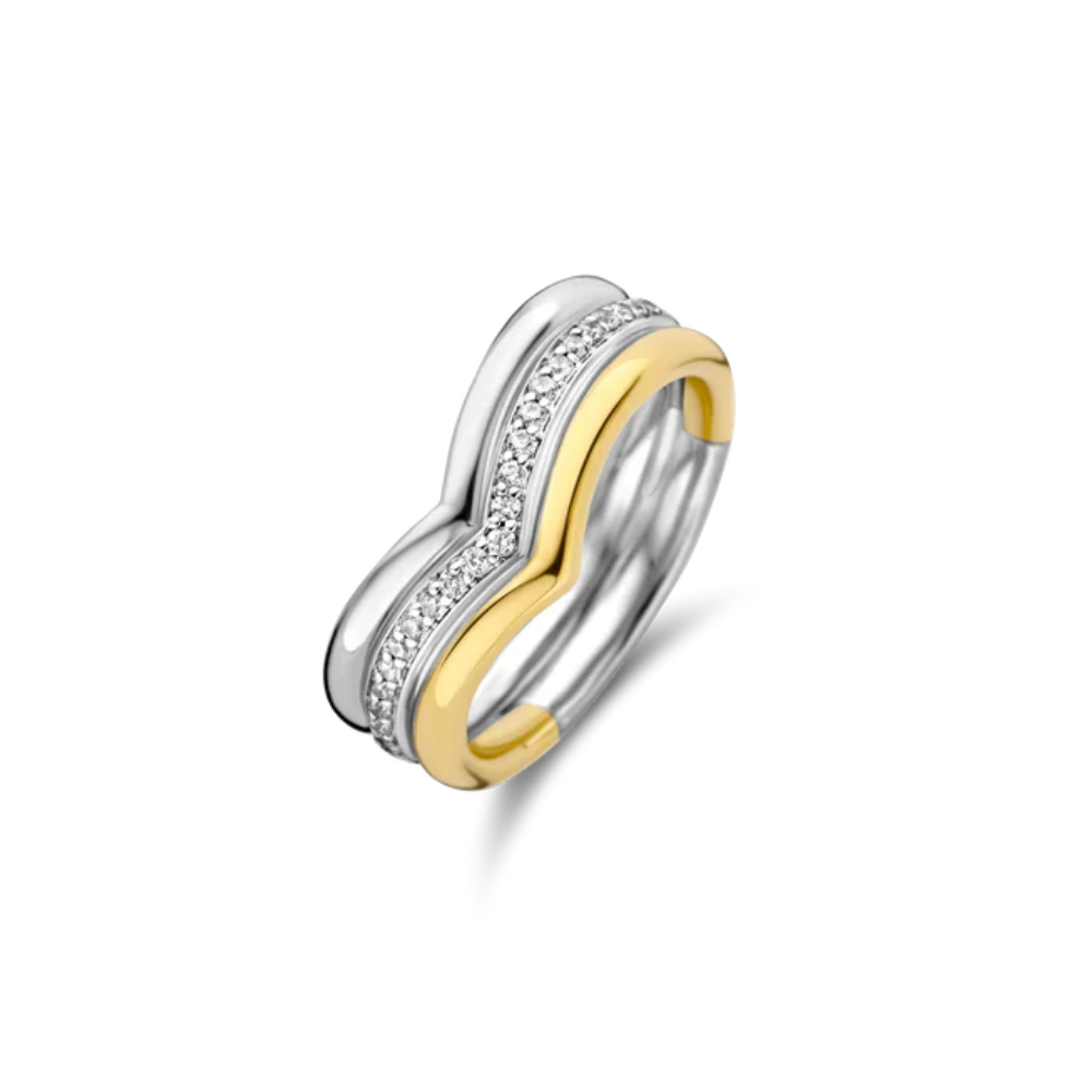 ANEL TI SENTO EM PRTA 925% BICOLOR C/ ZIRCÓNIAS