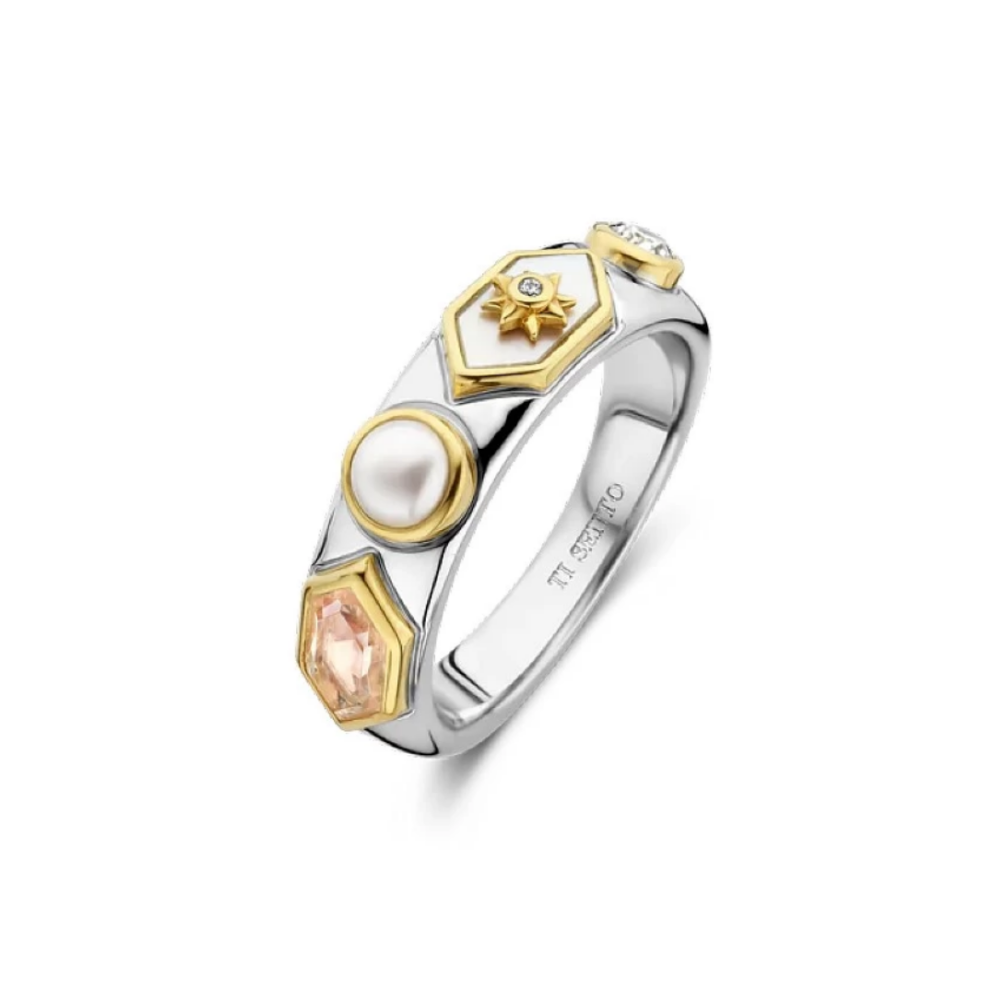 ANEL TI SENTO EM PRATA 925% C/ ZIRCONIAS,MADREPEROLA E PEROLA