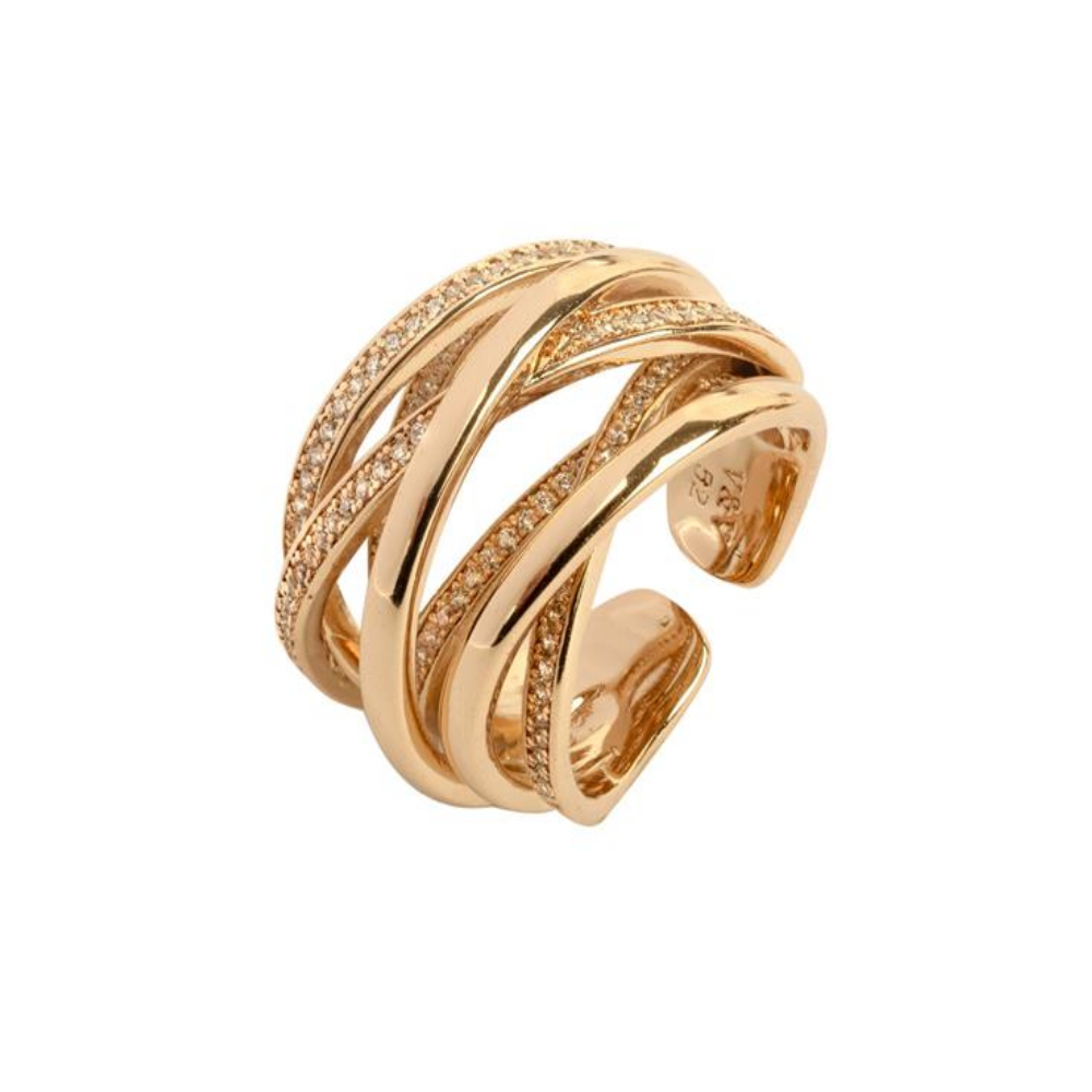 ANEL VIDAL & VIDAL EM BRONZE COM ZIRCÓNIAS BANHADO A OURO 18KT