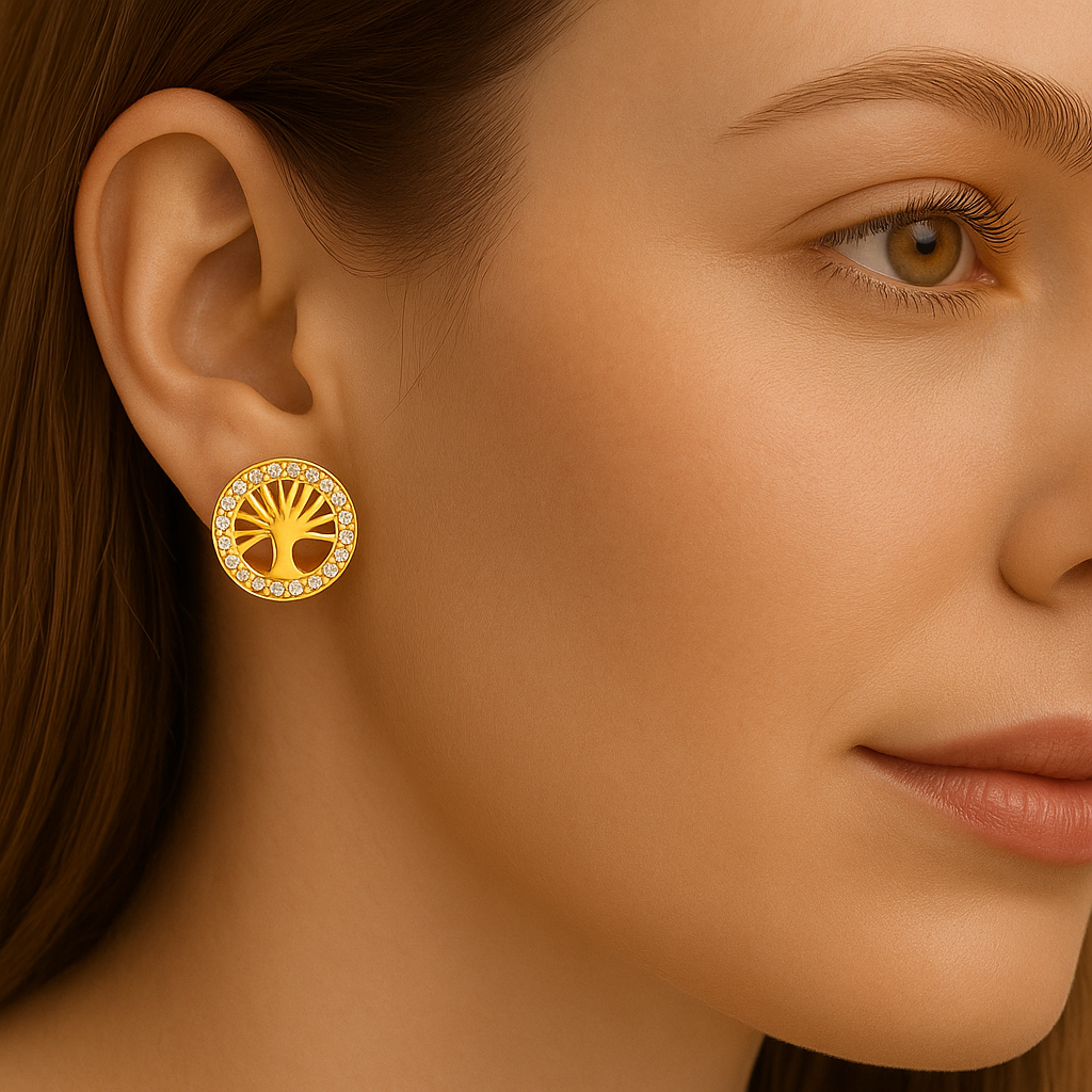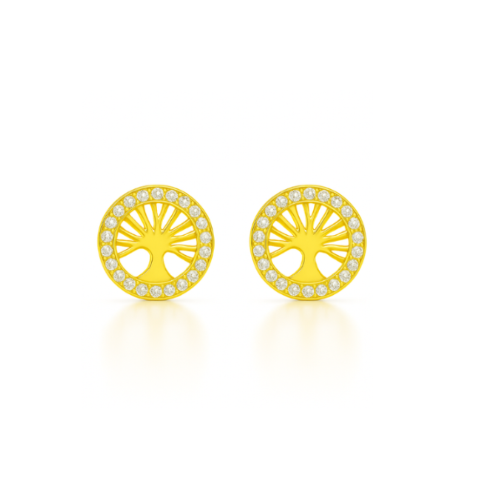 BRINCO ARVORE DA VIDA EM PRATA DOURADA 925 COM ZIRCONIAS