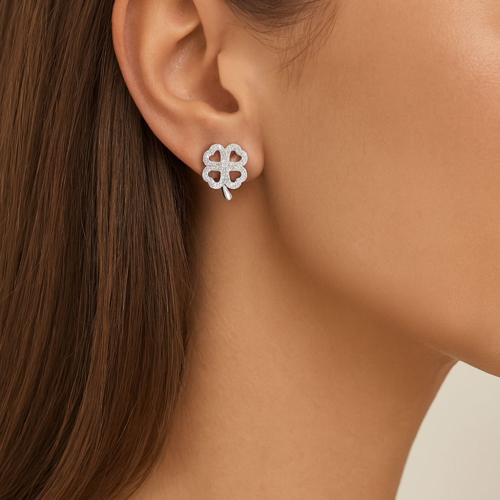 BRINCO TREVO EM PRATA 925 COM ZIRCONIAS