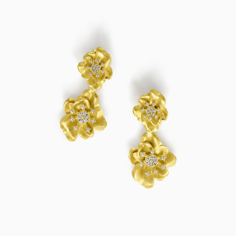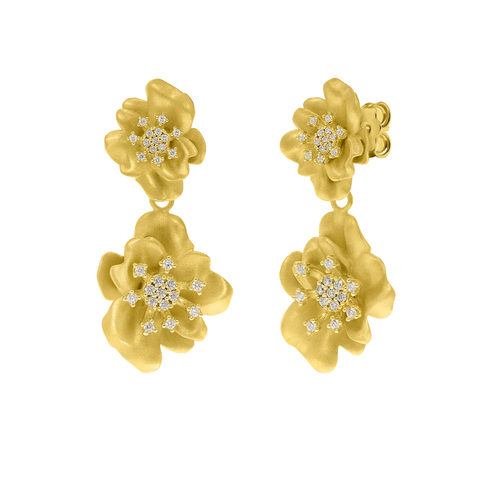 BRINCOS E. CAMPOS EM PRATA 925% DOURADA C/ ZIRCONIAS