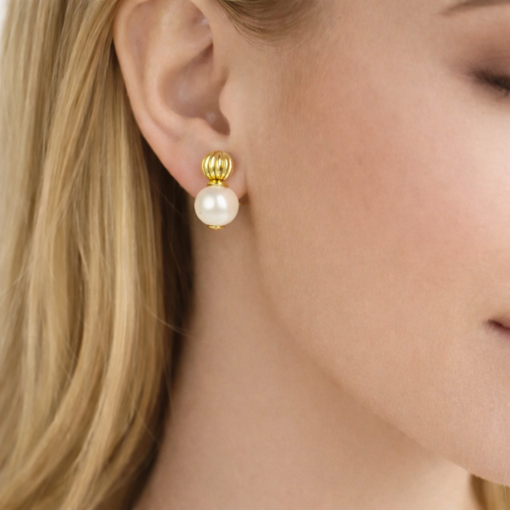 BRINCOS EM OURO 19.2K COM PEROLA