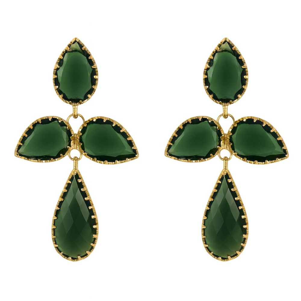 BRINCOS EM PRATA 925% DOURADA COM 4 PEDRAS VERDES