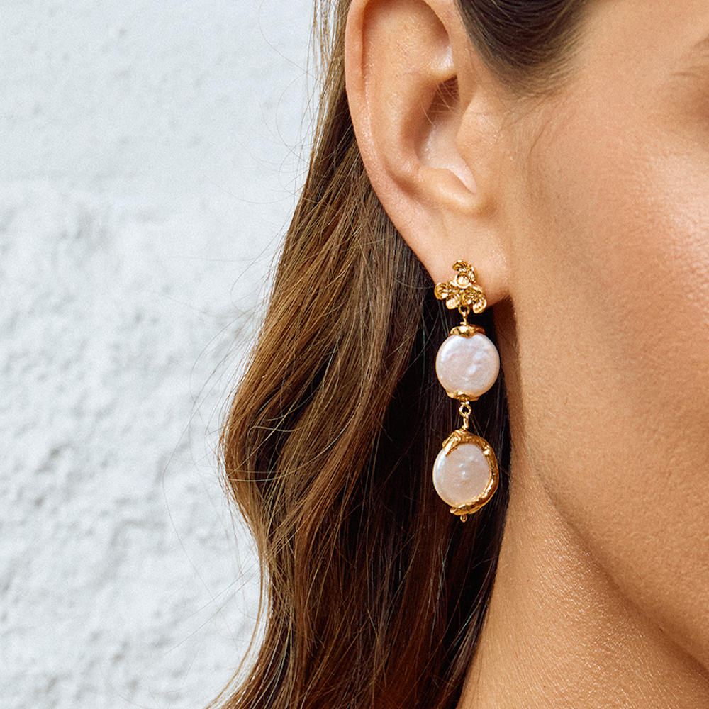 BRINCOS EUGÉNIO CAMPOS EM PRATA 925% COM PÉROLAS DE ÁGUA DOCE