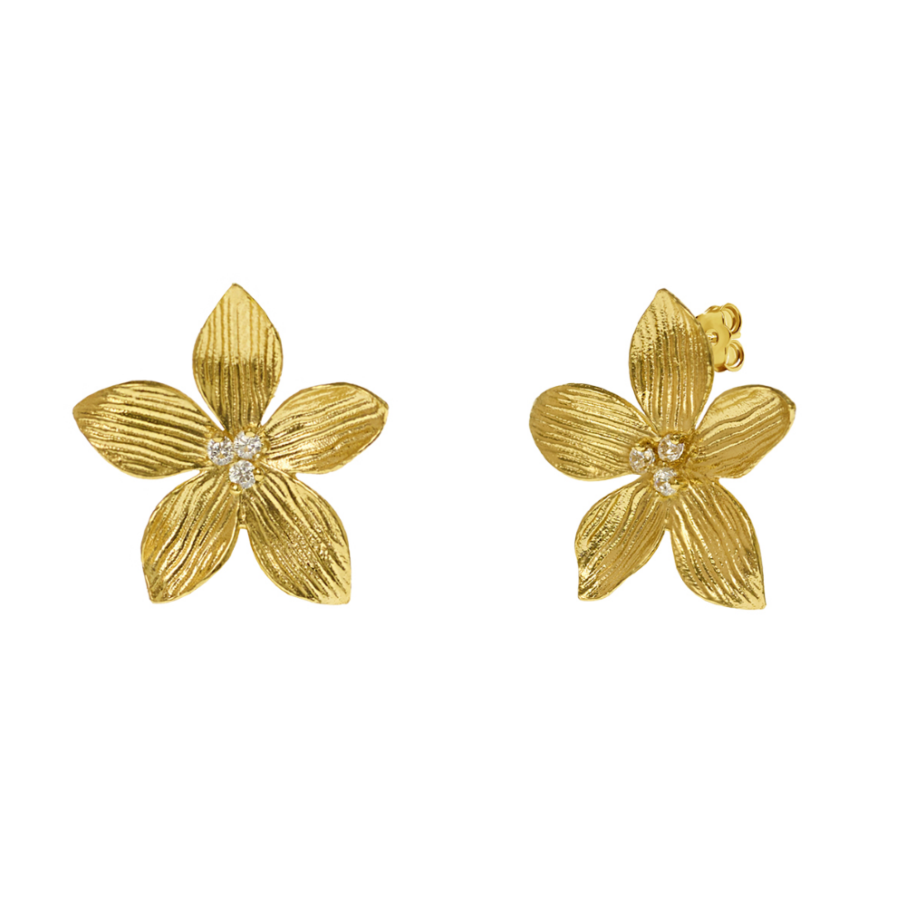 BRINCOS EUGENIO CAMPOS EM PRATA 925% DORADA C/ ZIRCONIAS
