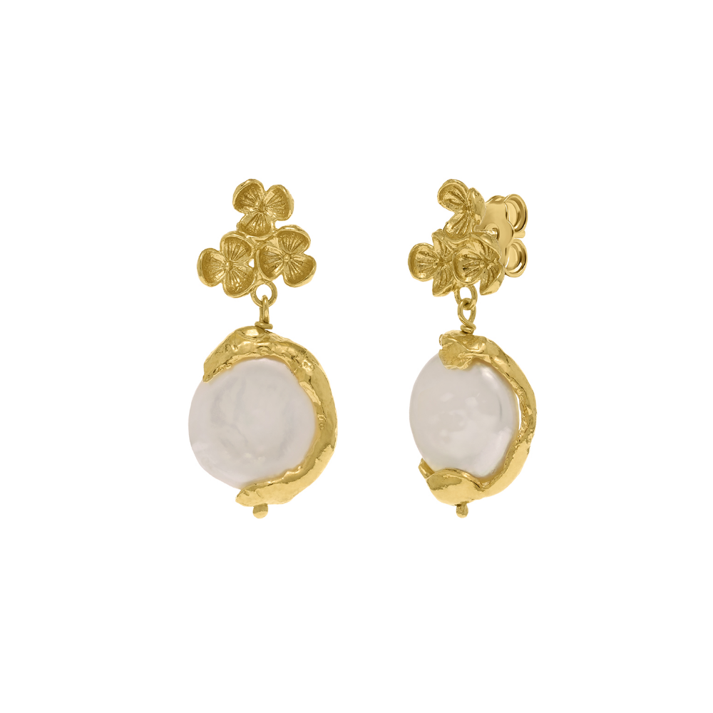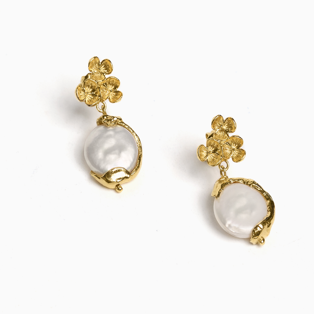 BRINCOS EUGÉNIO CAMPOS EM PRATA 925% DOURADA COM PÉROLAS DE ÁGUA DOCE