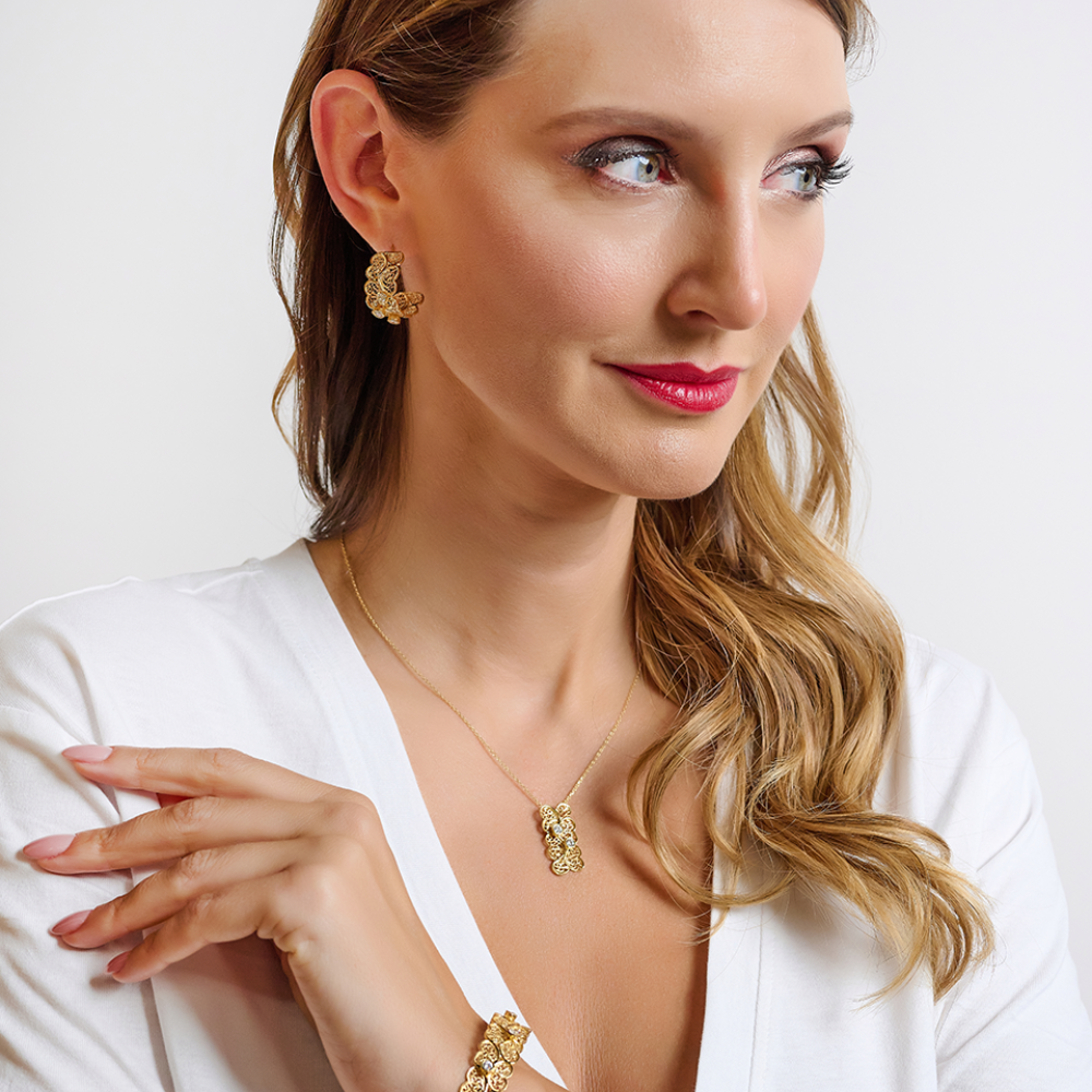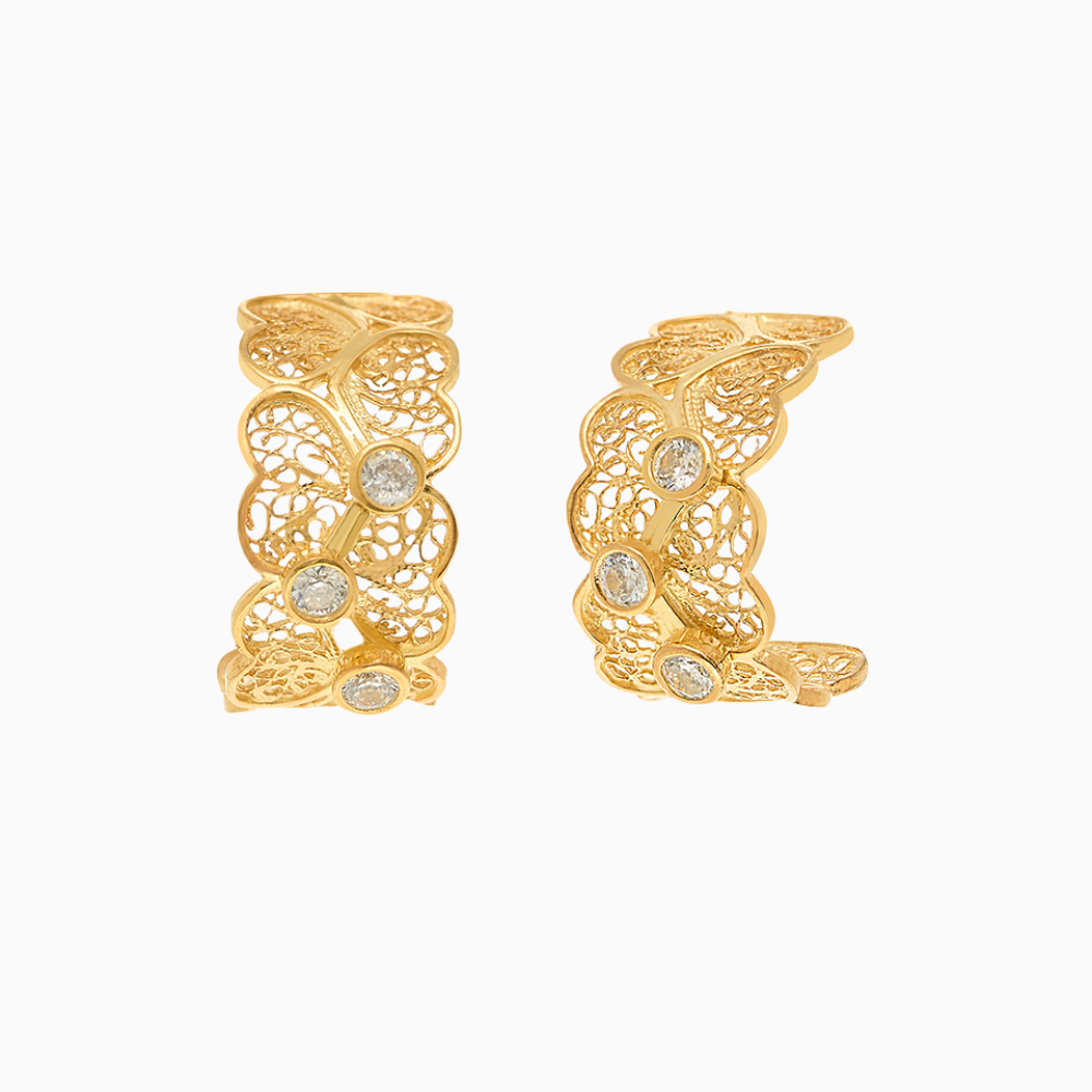 BRINCOS EUGÉNIO CAMPOS EM PRATA 925% DOURADA COM ZIRCÓNIAS