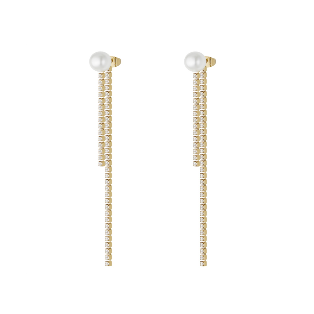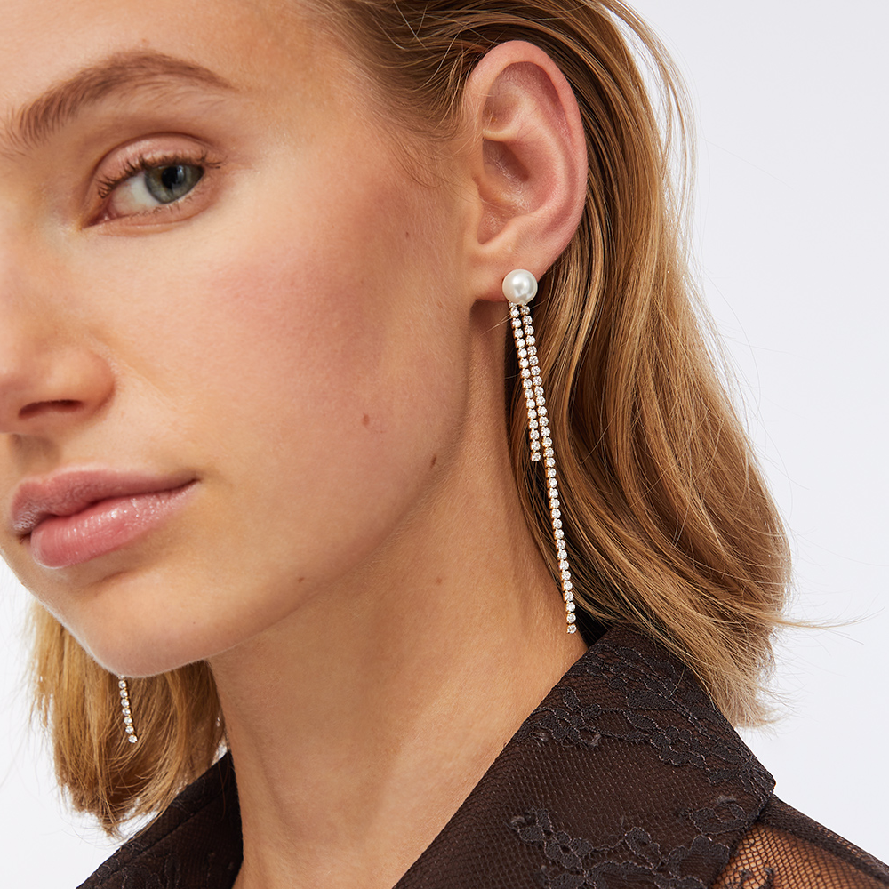 BRINCOS LIU JO EM AÇO DOURADO COM PÉROLA E ZIRCÓNIAS