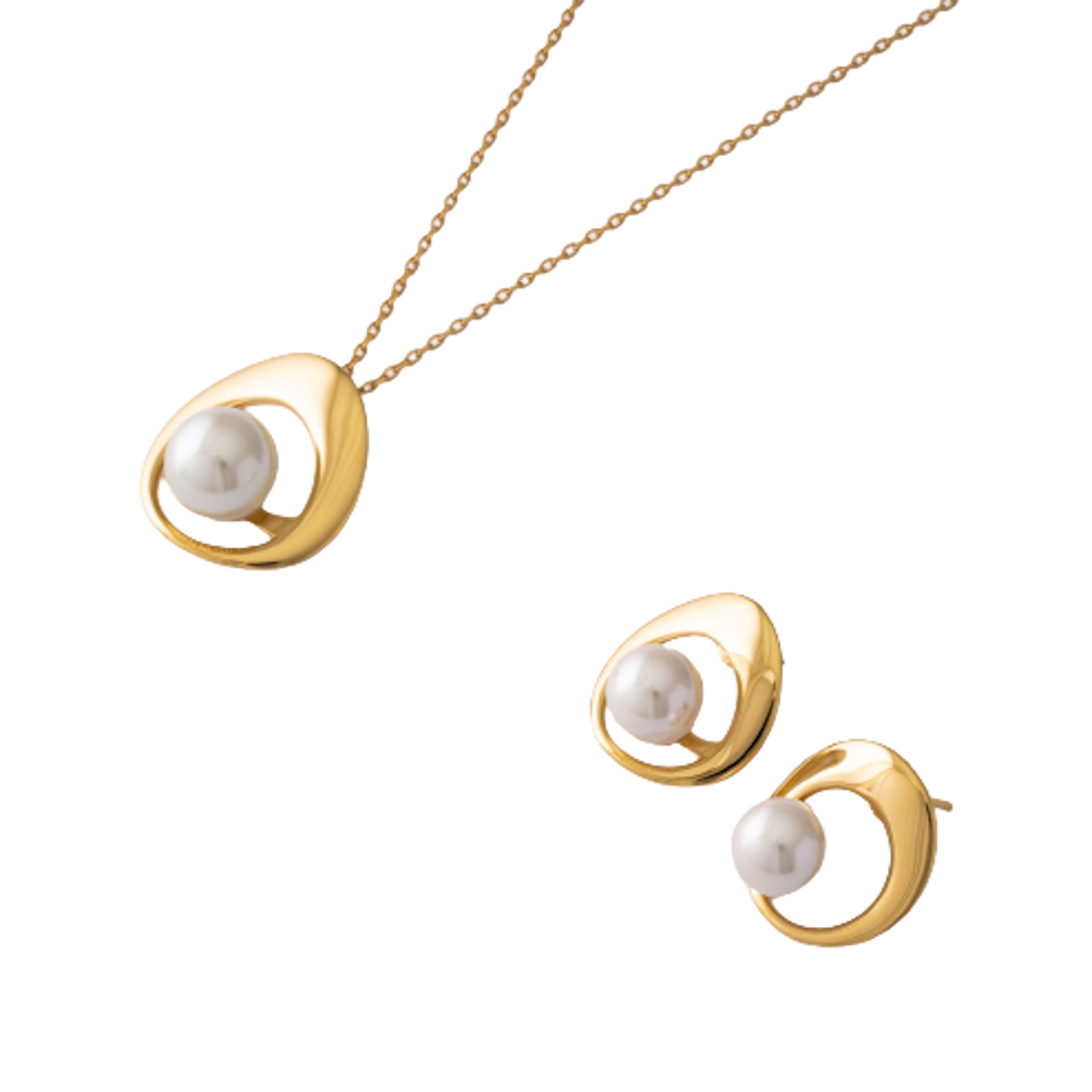 BRINCOS MAJORICA PETRA PRATA 925% DOURADA C/ PEROLA 7,66GR