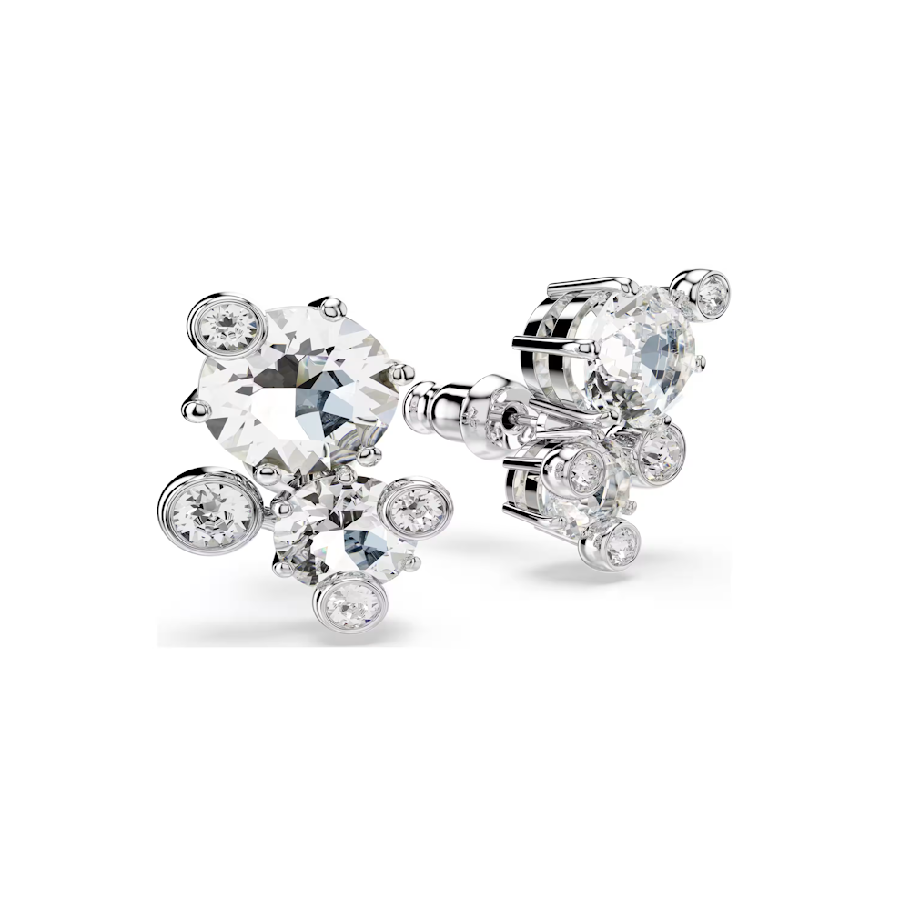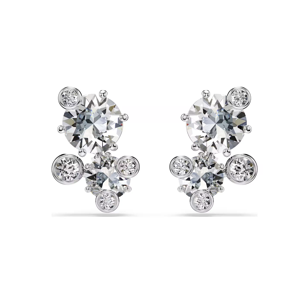 Brincos Swarovski Constella stud earrings, Round cut, White, Rhodium plated