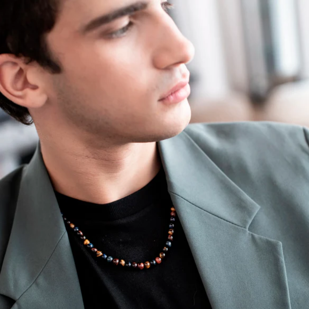 COLAR ALBERT M. PRATA 925 COM PEDRAS OLHO DE TIGRE TERRA 3.00GR