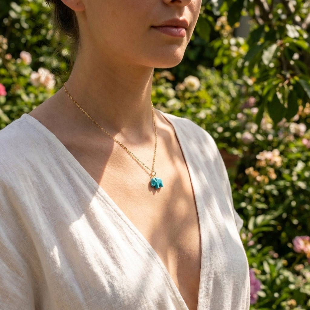 COLAR EM PRATA 925 ELEFANTE COR TURQUESA COM PEROLA