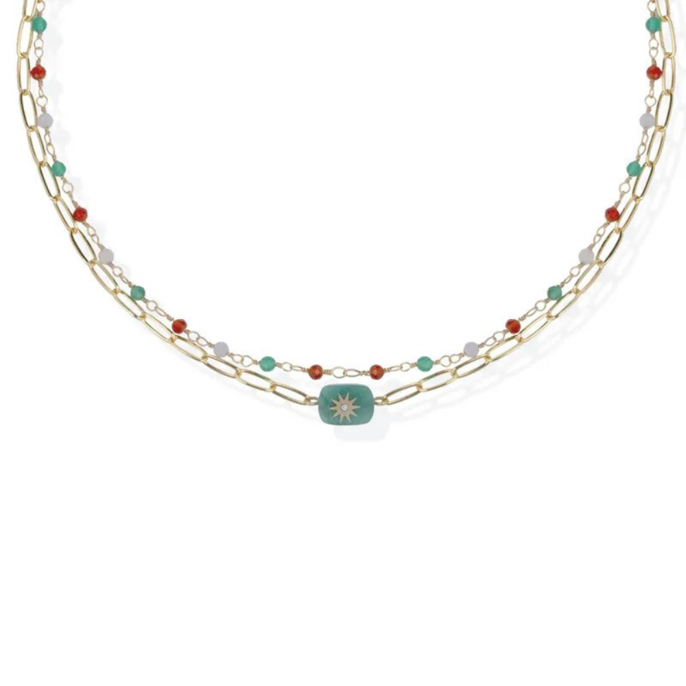 COLAR LIU JO DUPLO EM AÇO COM PEDRAS DE COR LJ2897