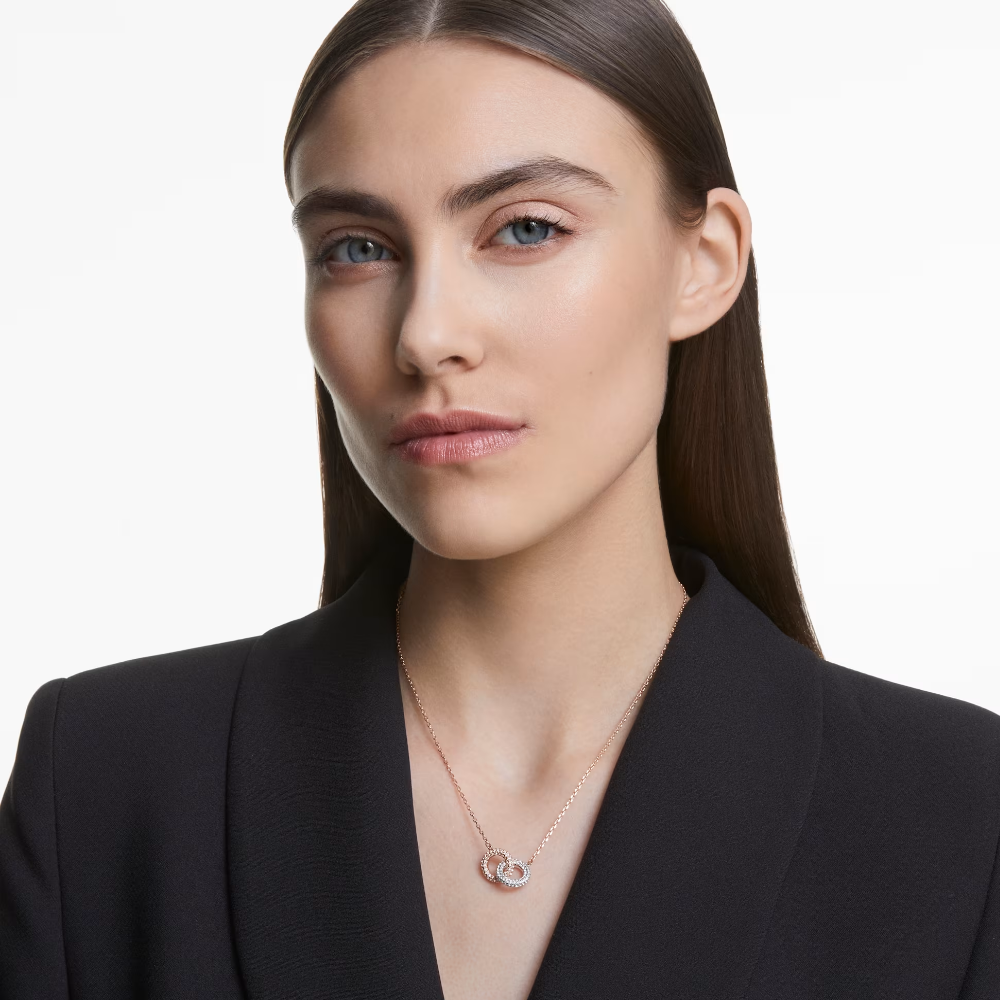 Colar Swarovski Dextera Círculos entrelaçados, Branco, Lacado a rosa dourado
