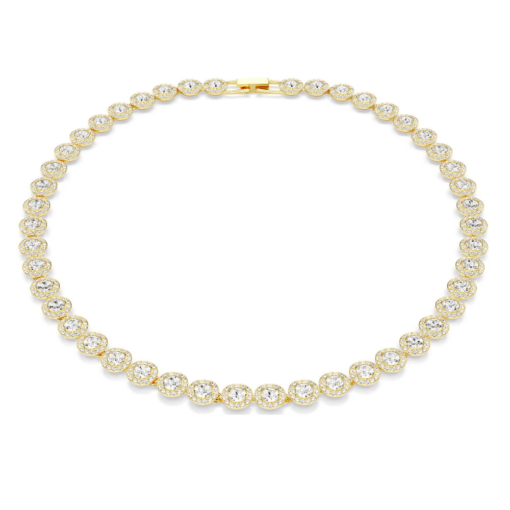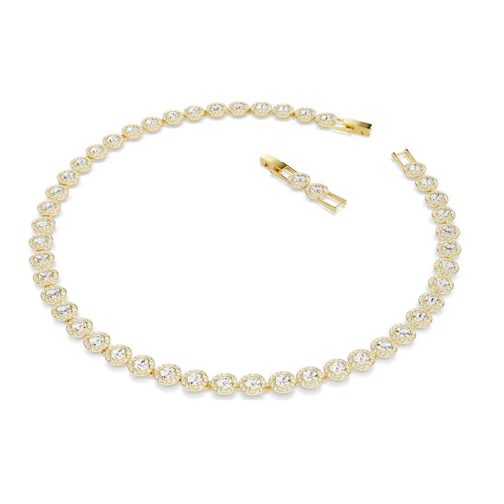 Colar Swarovski Tennis Una Angelic, Lapidação redonda, Branco, Lacado a dourado