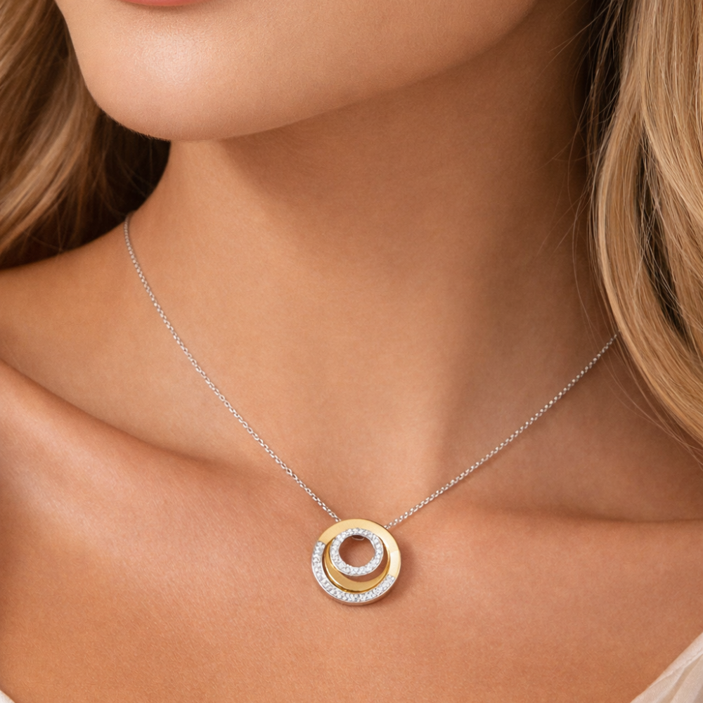 COLAR TI SENTO EM PRATA 925% BICOLOR C/ ZIRCONIAS