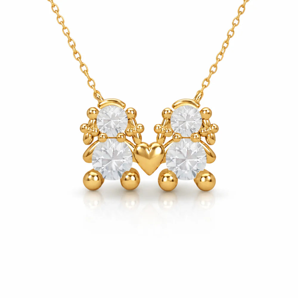 FIO EM PRATA 925% DOURADA 2 MENINAS AMORZINHO BY MOCHO