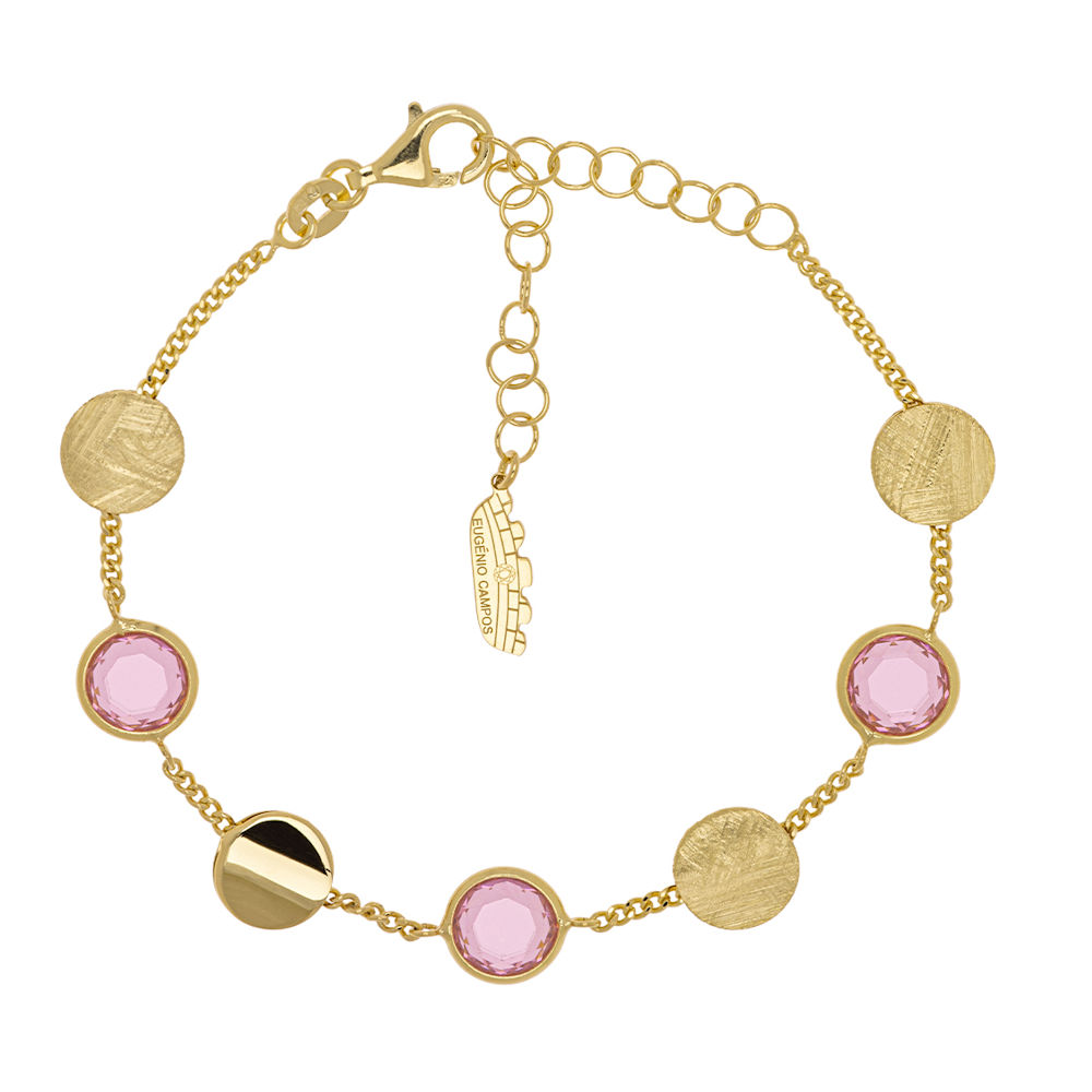 PULSEIRA EUGÉNIO CAMPOS EM PRATA 925% DOURADA COM PEDRA ROSA
