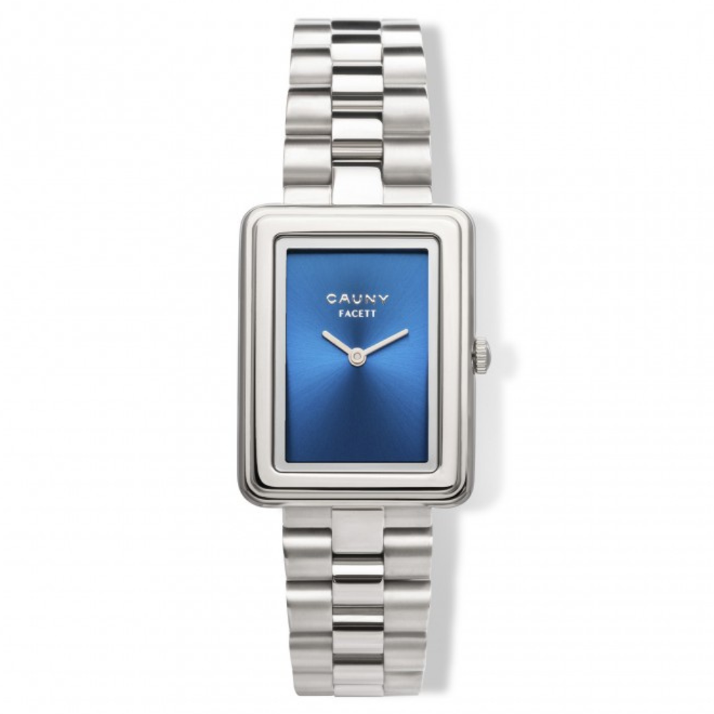 RELÓGIO CAUNY FACETT PRATEADO COM MOSTRADOR AZUL "CFT003"