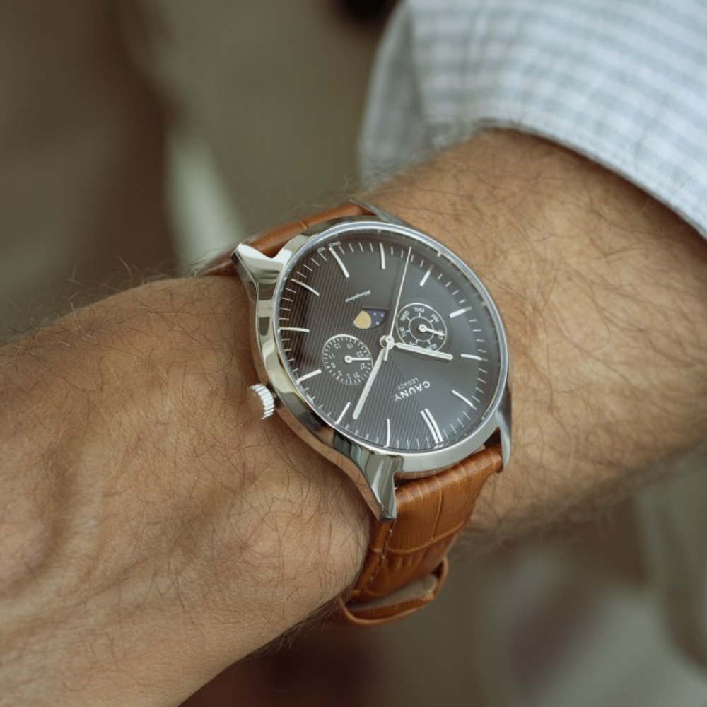 RELÓGIO CAUNY LEGACY BRACELETE EM PELE COM MOSTRADOR PRETO 41 MM