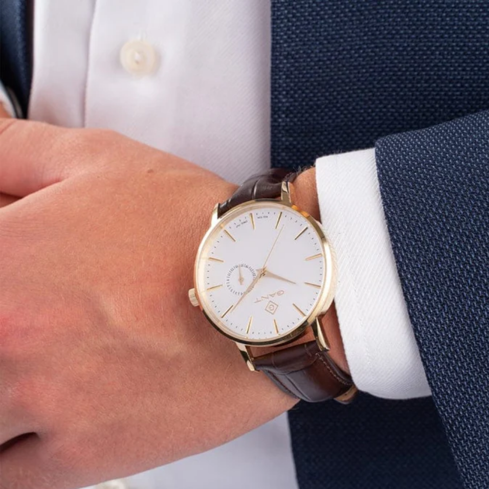 RELOGIO GANT PARK HILL III 41.5 BRANCO CAIXA DOURADA E PELE CASTANHA