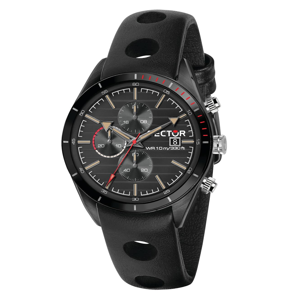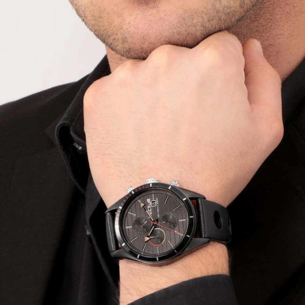 RELÓGIO SECTOR 770 44MM IPBLACK CHRONO BLACK+RED DETAILS LEATHER STRAP